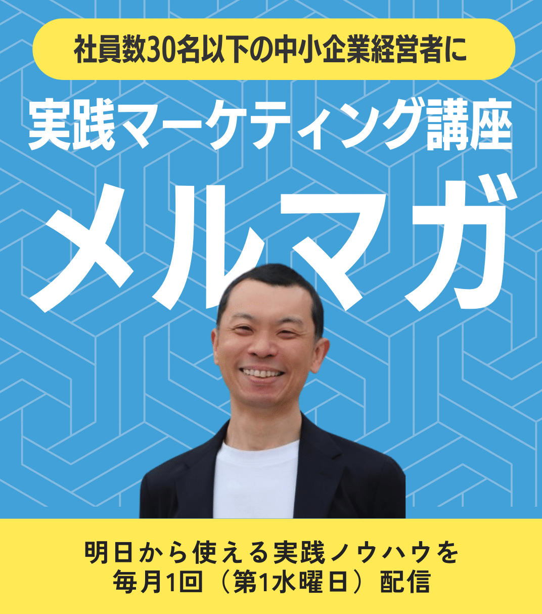 「実践マーケティングメルマガ」を月1回、第1水曜日に配信します。